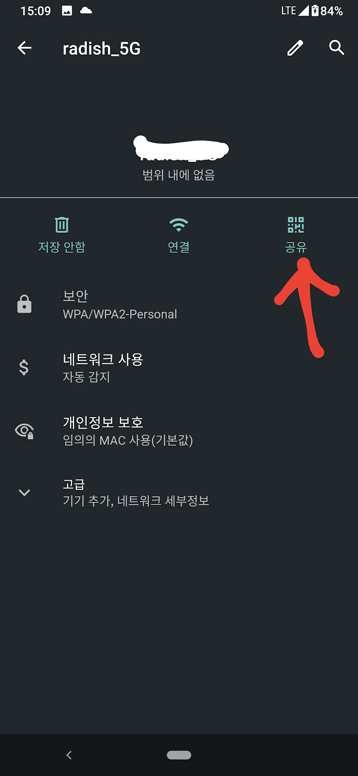 친구가 집에 왔을때나 카페 같은 곳에서 와이파이 정보를 공유하고 싶은 사장님들은 활용하기 좋은 팁인듯 합니다.